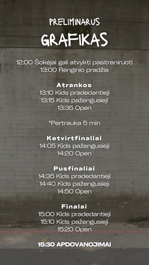 *Mokestis nėra grąžinamas, jei šokėjas ar žiūrovas neatvyksta.
